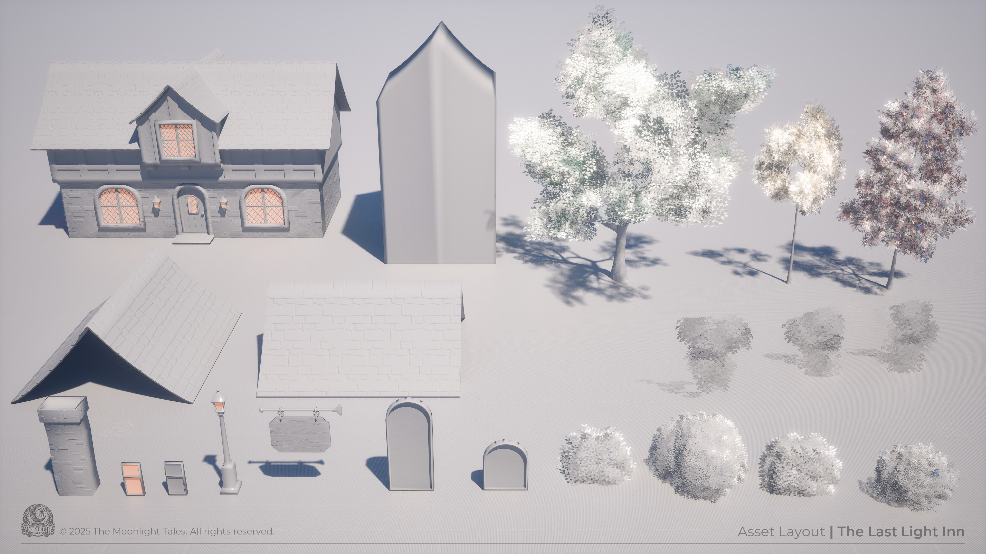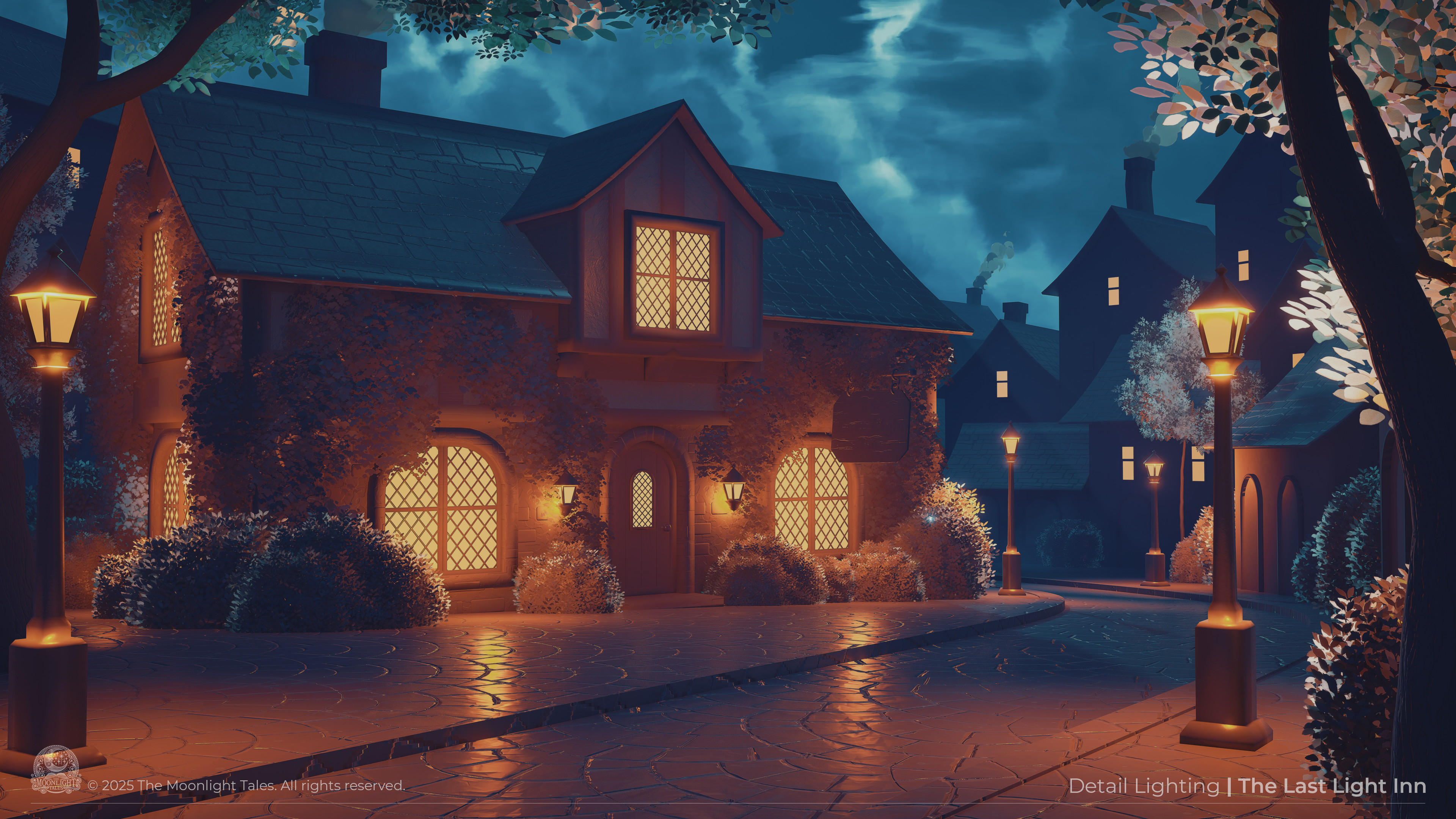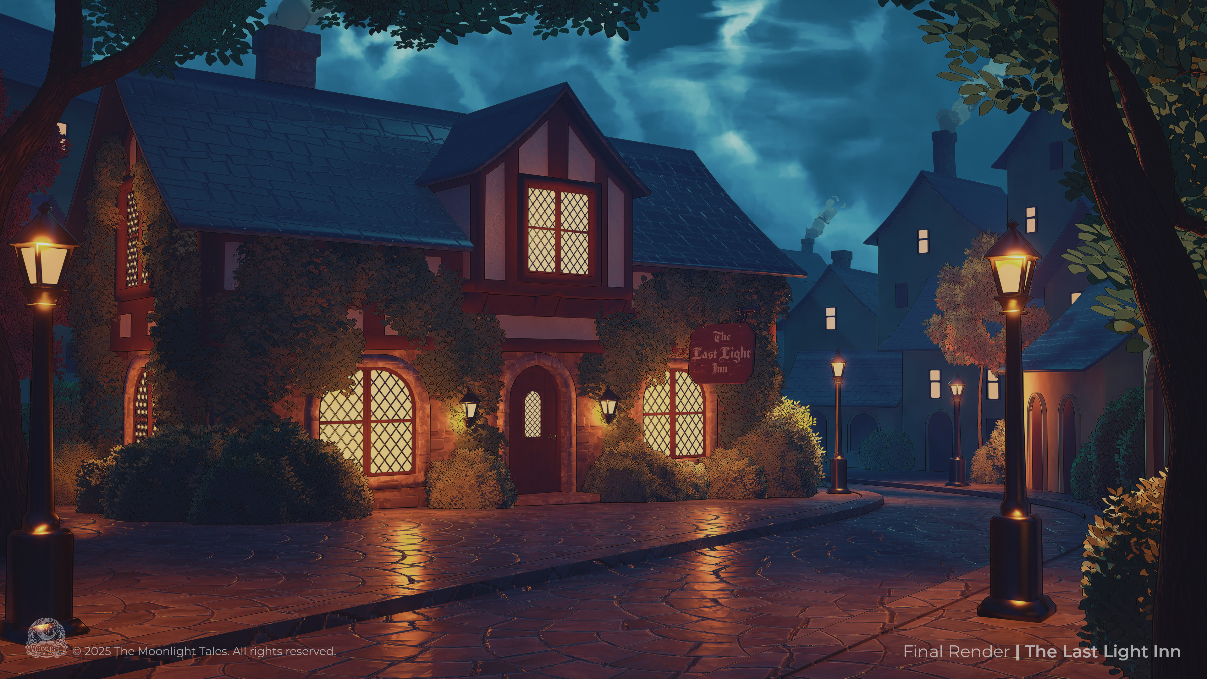 This project involved creating a stylised animated environment for the client’s project, The Moonlight Tales. Titled The Last Light Inn, this scene was the first of three initial environments developed for the client.